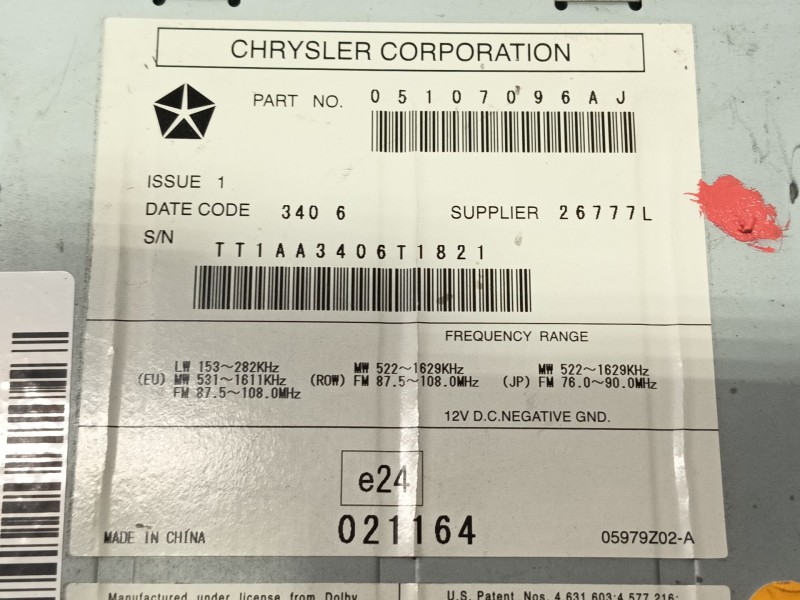 ARTICULO SIN CODIGO DE DESBLOQUEO. SOLICITE BASTIDOR PARA PEDIRLO A SU CONCESIONARIO. 2677L. Recambio de sistema audio / radio cd para chrysler sebring (js) 2.0 crd referencia OEM IAM 5107096AH 05107096AJ