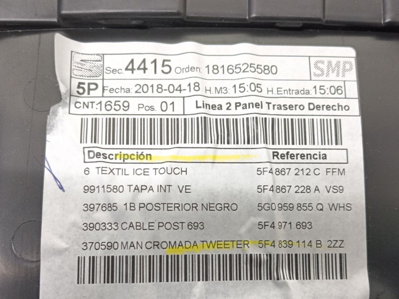GUARNECIDO PUERTA TRASERA DERECHA 5F4867212CFFM...
