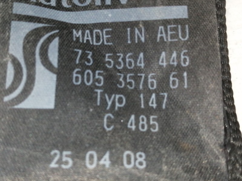 607707100C 605357661. Recambio de cinturon seguridad trasero derecho para fiat punto (evo) (199) dynamic referencia OEM IAM 735364446